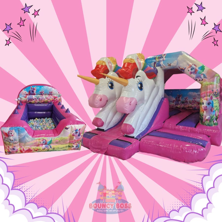 Our Unicorn Bouncy Castle and Ball pit is a show stopper with high tech whimsical artwork matching artwork it is going to give your celebration that wow factor.