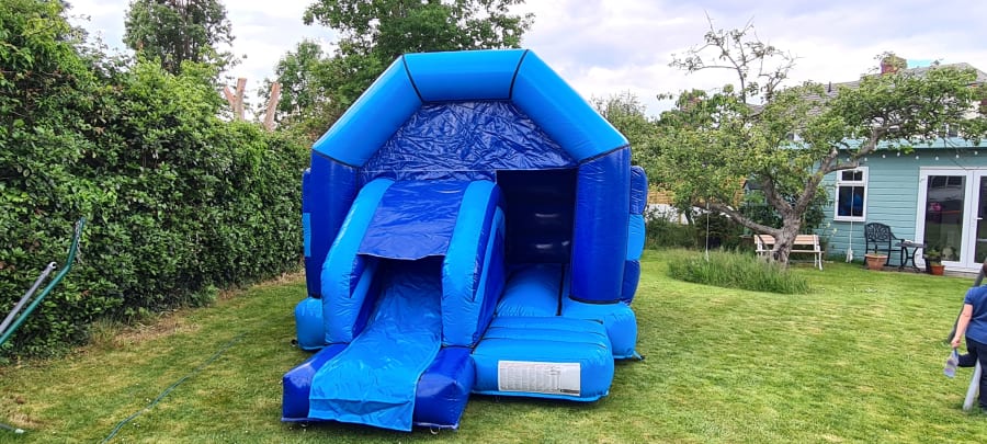 Looking for the perfect addition to your next party or event? Look no further than our Light & Dark Blue Castle Slide Combo! This bouncy castle slide combo is guaranteed to provide hours of fun and entertainment for guests of all ages.