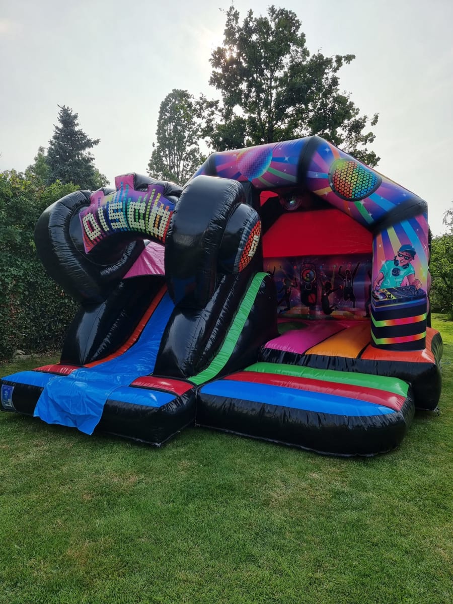 3D Disco Bouncy Castle with a Slide hire