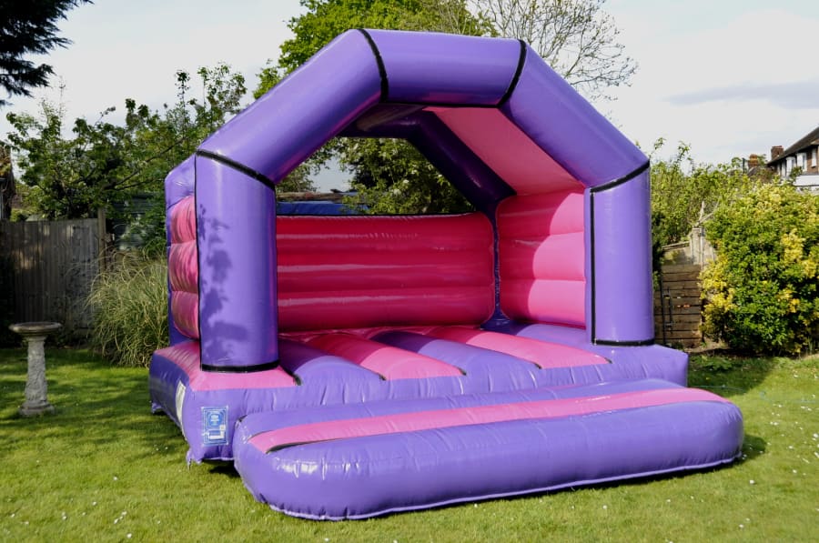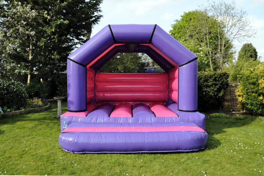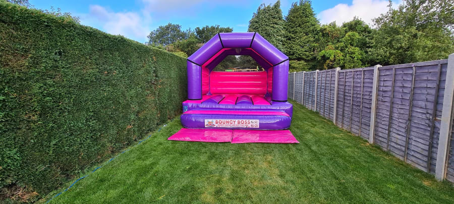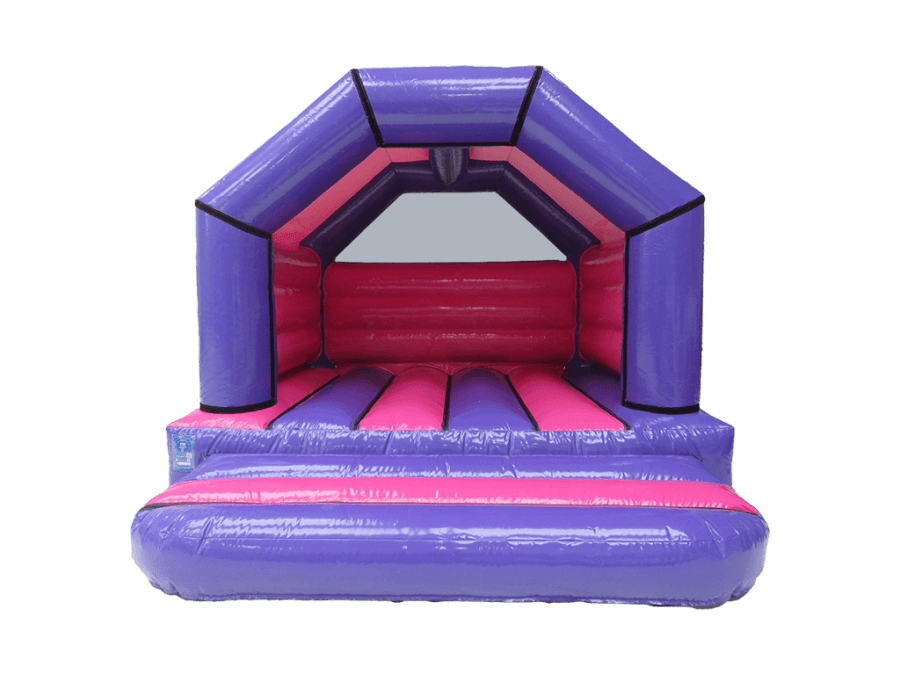 No Theme? No Problem!! Simple yet stylish purple and fuchsia A frame castle. Perfect if you want to colour match without having to choose a specific theme for your celebration. This high quality castle is an excellent choice for any Birthday party, family celebration or just a well deserved after school treat! Rain cover included sewn in to the sides with netting sewn in to the rear for safety.