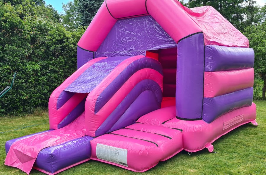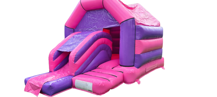 Don't miss out on the fun! Book the Disco Pink and Purple Castle Slide Combo now and create unforgettable memories for your guests.
