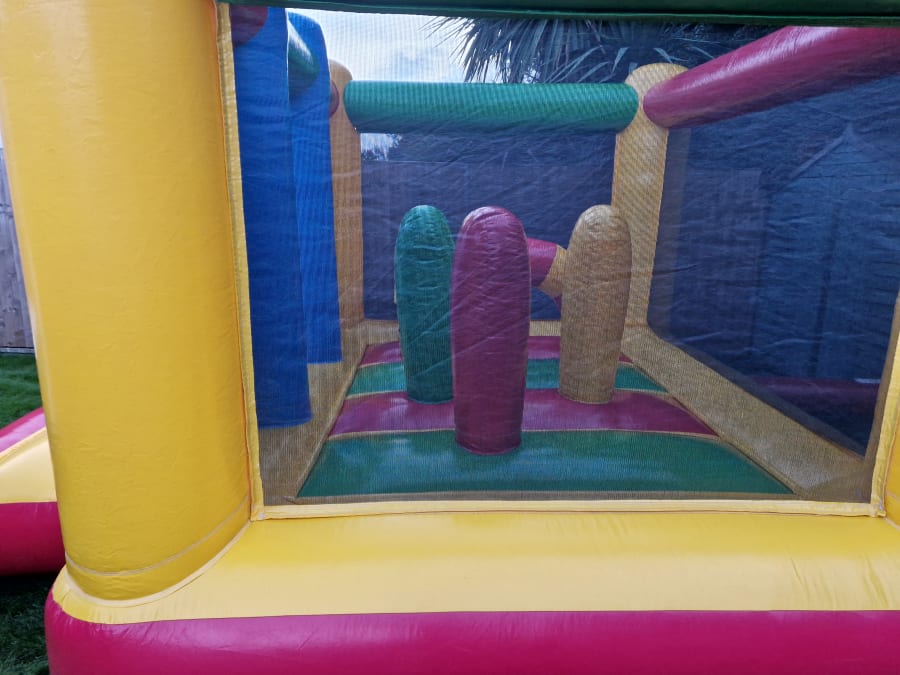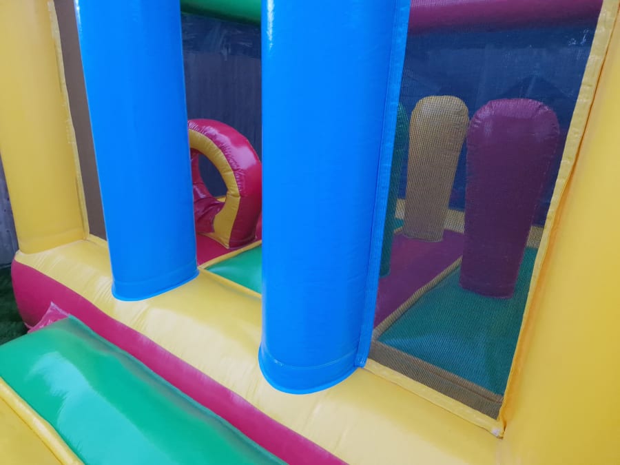 The bouncy castle features vibrant colourful, kid-friendly designs and includes a variety of activities such as climbing, crawling, sliding, and bouncing. It has built in activities to keep with the busiest of imaginations and to occupy for hours. Jump through Hoops which can easily be portals leading to magical worlds or bish bash posts which could be knights guarding the kingdom...all of this within a secured environment, its high safety netted walls takes away any worry whilst the children play under the watchful eye of parents. The castle is made from high-quality, durable material and is safe and sturdy for toddlers to play on.