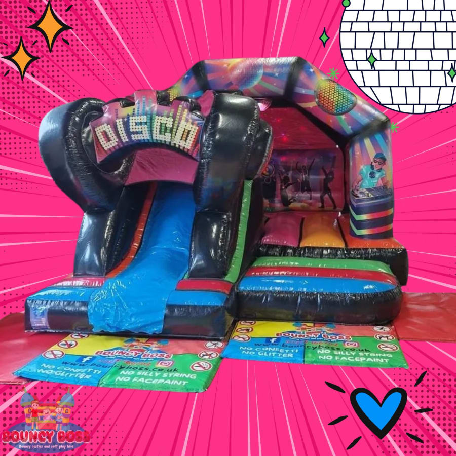 3D Disco Bouncy Castle with a Slide hire
