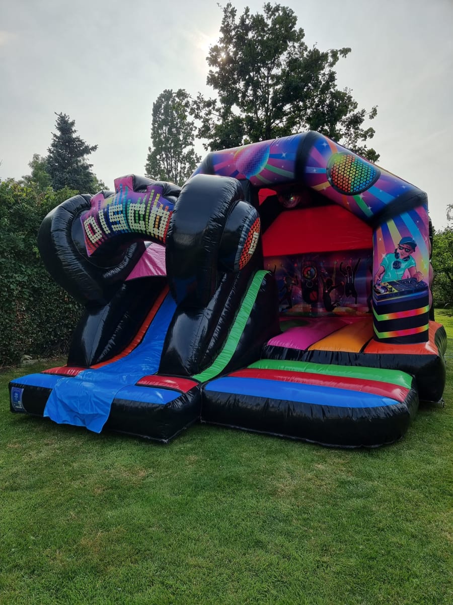 Get ready to take your party to the next level with the spectacular 3D Disco Slide Castle! This brand new addition to our collection is designed to bring joy, excitement, and a whole lot of fun to your event. With its vibrant colours and dazzling disco lights, this castle is sure to captivate both kids and adults alike. The disco bouncy castle has fast replaced the disco dome, you can bounce, slide and party all in one.