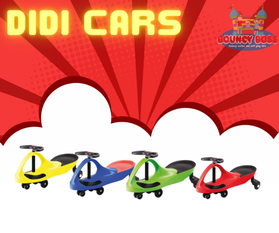 A great addition alongside our Bouncy Castles and Soft Play, our didi cars are ideal for indoor venues. Riders simply turn the wheel left and right to move the didi car forwards. Flip the wheel, and the didi car then goes backwards! Didicar works best when used on hard, smooth, flat surfaces. Didi Cars are great for promoting exercise, physical development, balance, coordination, and speed awareness. You can also book 8 didi cars and receive a small discount.