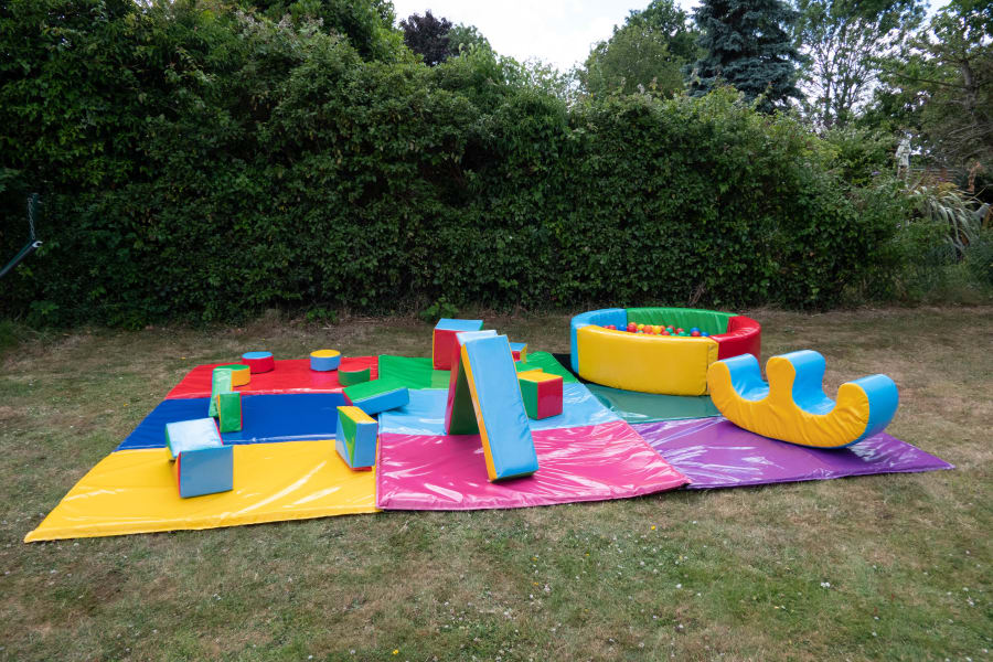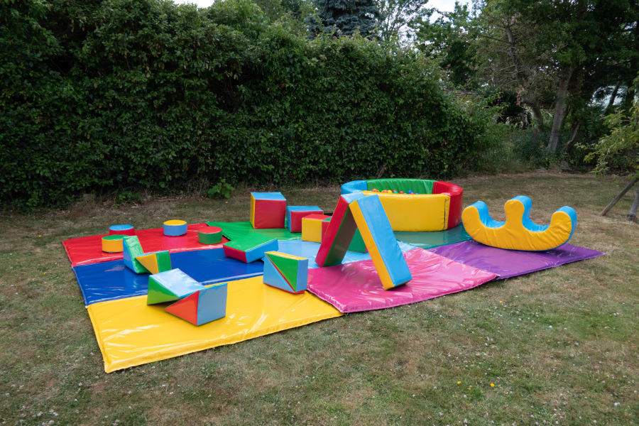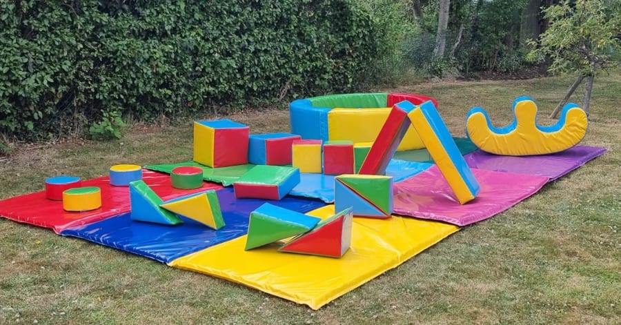 Ball pit and Soft play Hire is perfect for toddlers' and young children's parties! This 18 piece rainbow soft play set, LARGE round ball pit and double rocker is must and caters for all children! Kids will love playing with all these wonderful, bright and interactive products! Also includes 500 multicoloured commercial soft play balls and 6 soft play mats giving a really nice sized play area. Matching bouncy castle also available!